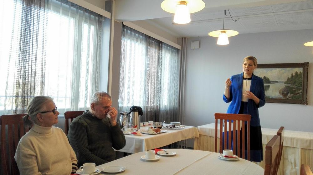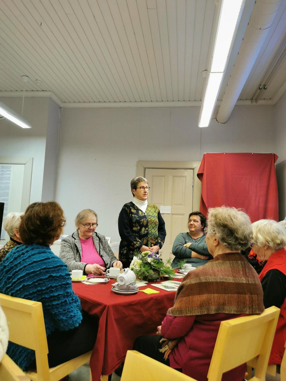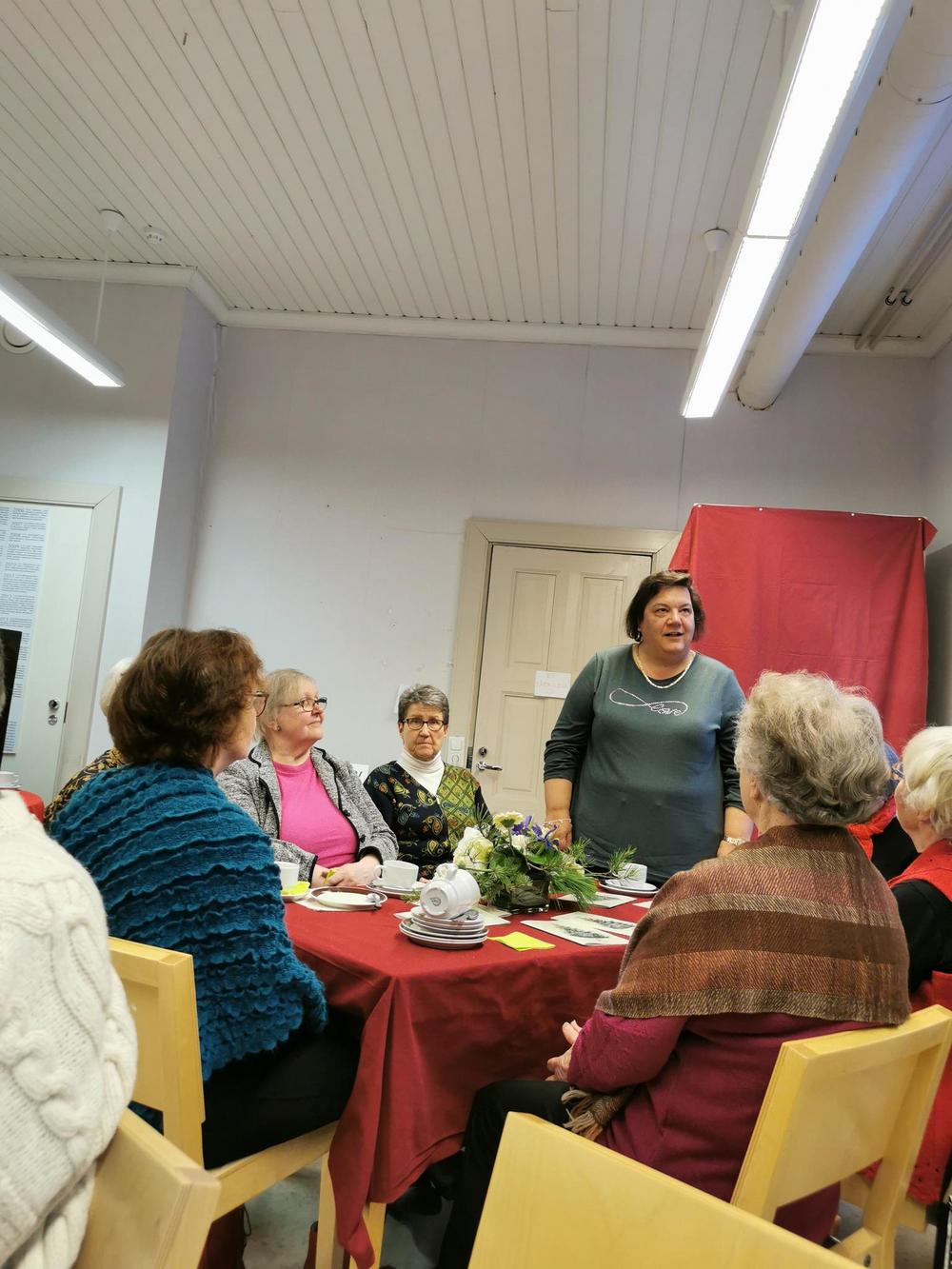 Vieraaksemme Omalle Tuvalle saapui Seinäjoelta pitkänlinjan poliitikko, eduskunnan 1.varapuhemies, kansanedustaja Paula Risikko. Hän kertoi viimeaikojen eduskunnan työskentelystä, omaan hersyvään tyyliinsä. Paulaa on mukava ja helppo kuunnella. Me seniorit nauttimme tilaisuudesta, yhdessäolosta, kerrattiin syksyn tulevia tapahtumia, syötiin lohisoppaa, kasviskeittoa ja herkullisia riesoja. Kahvin kanssa oli herkullinen mustikkakakku! Tavan mukaan myös arpajaiset!!