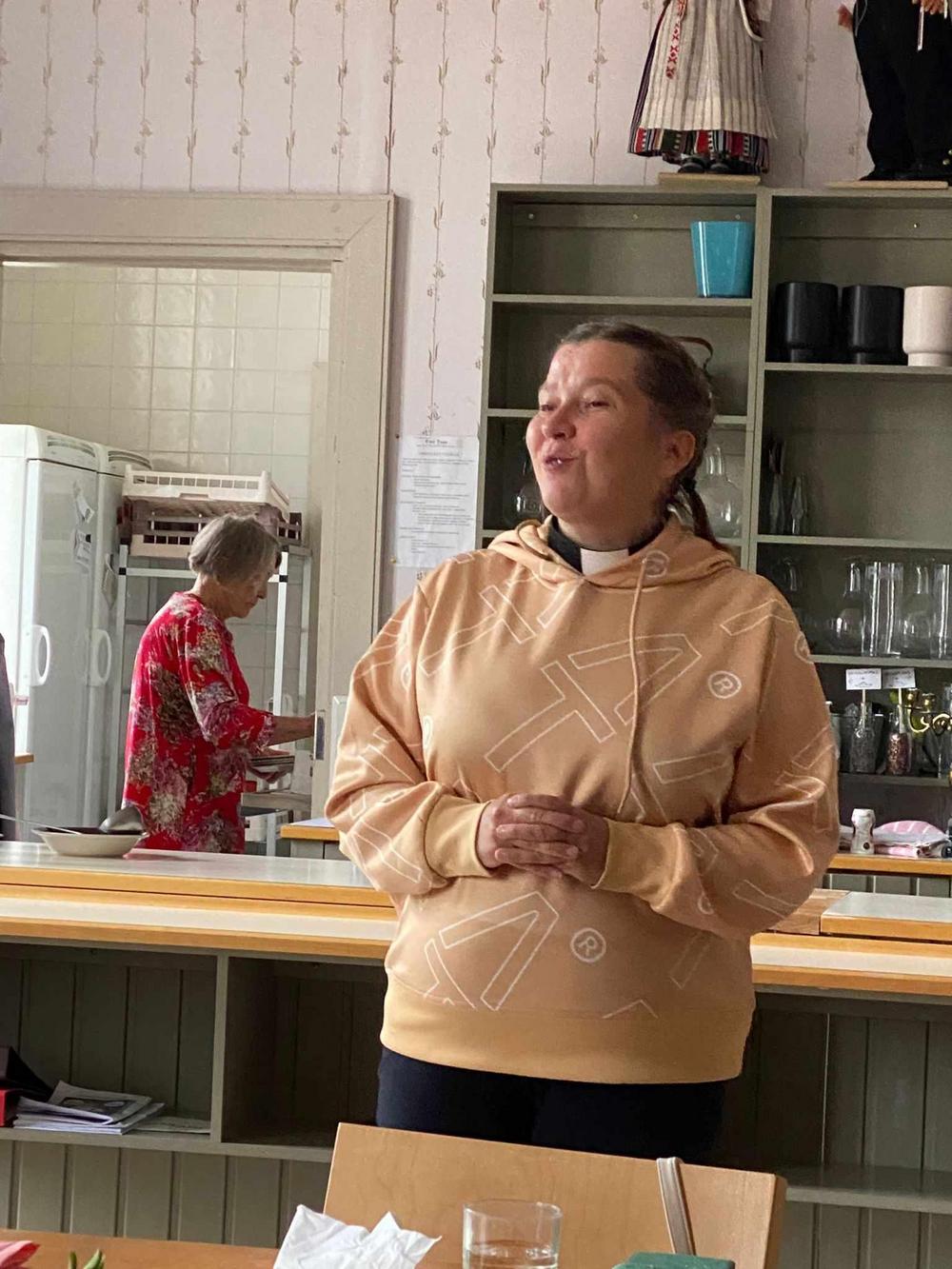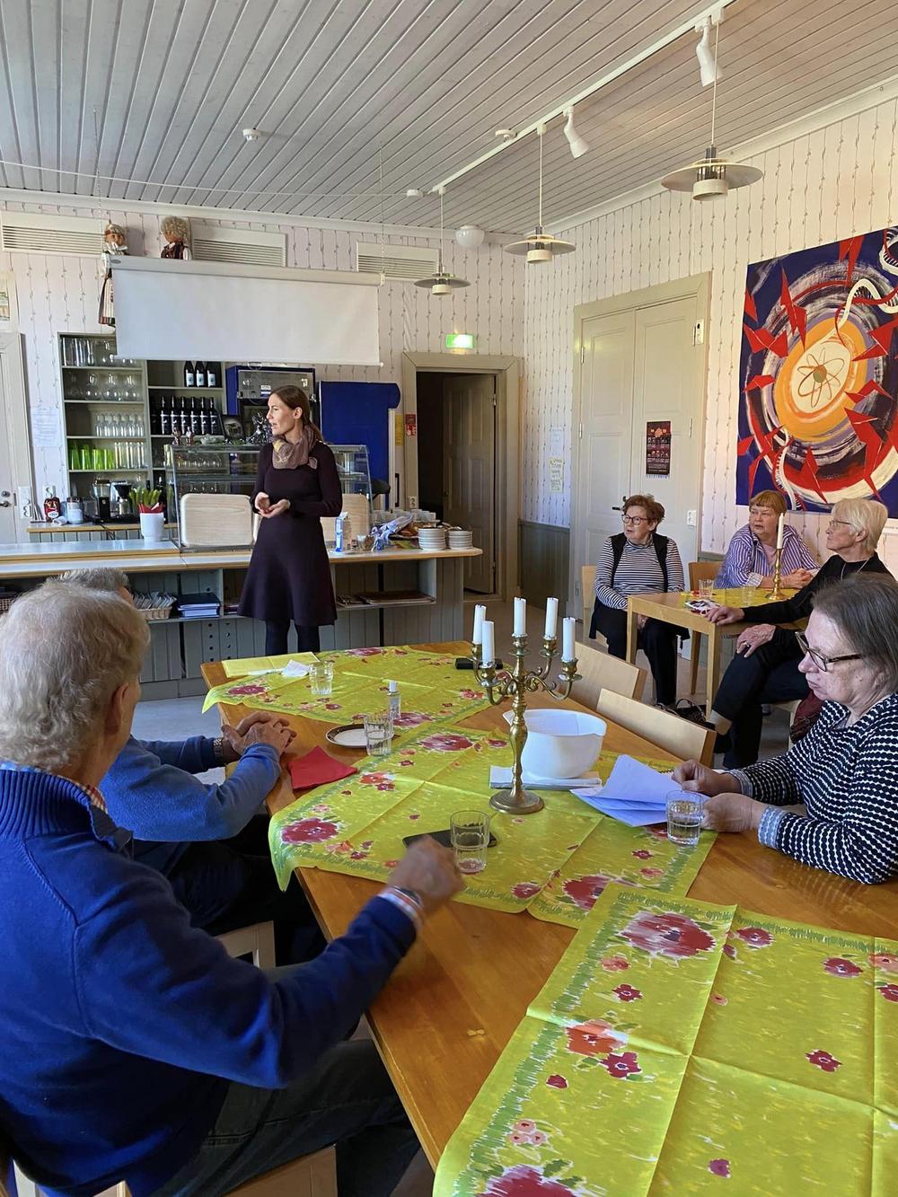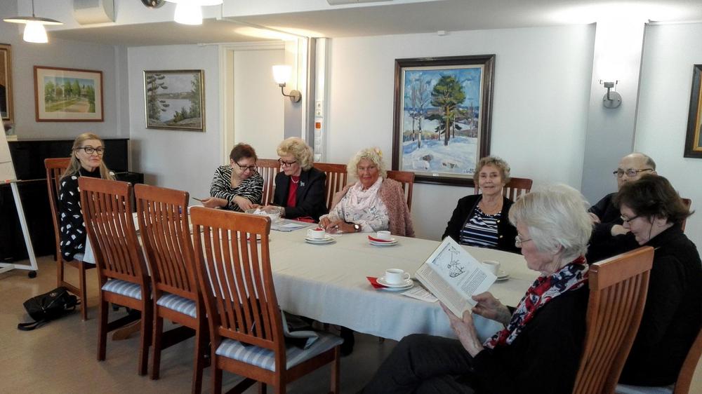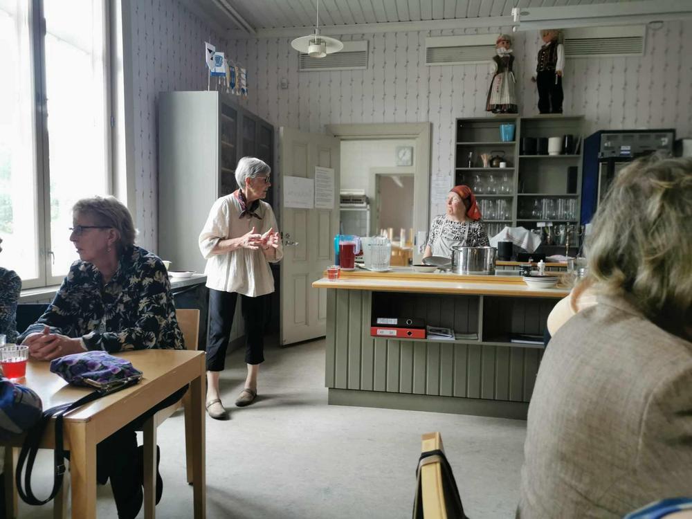 Vieraaksemme Omalle Tuvalle saapui Seinäjoelta pitkänlinjan poliitikko, eduskunnan 1.varapuhemies, kansanedustaja Paula Risikko. Hän kertoi viimeaikojen eduskunnan työskentelystä, omaan hersyvään tyyliinsä. Paulaa on mukava ja helppo kuunnella. Me seniorit nauttimme tilaisuudesta, yhdessäolosta, kerrattiin syksyn tulevia tapahtumia, syötiin lohisoppaa, kasviskeittoa ja herkullisia riesoja. Kahvin kanssa oli herkullinen mustikkakakku! Tavan mukaan myös arpajaiset!!