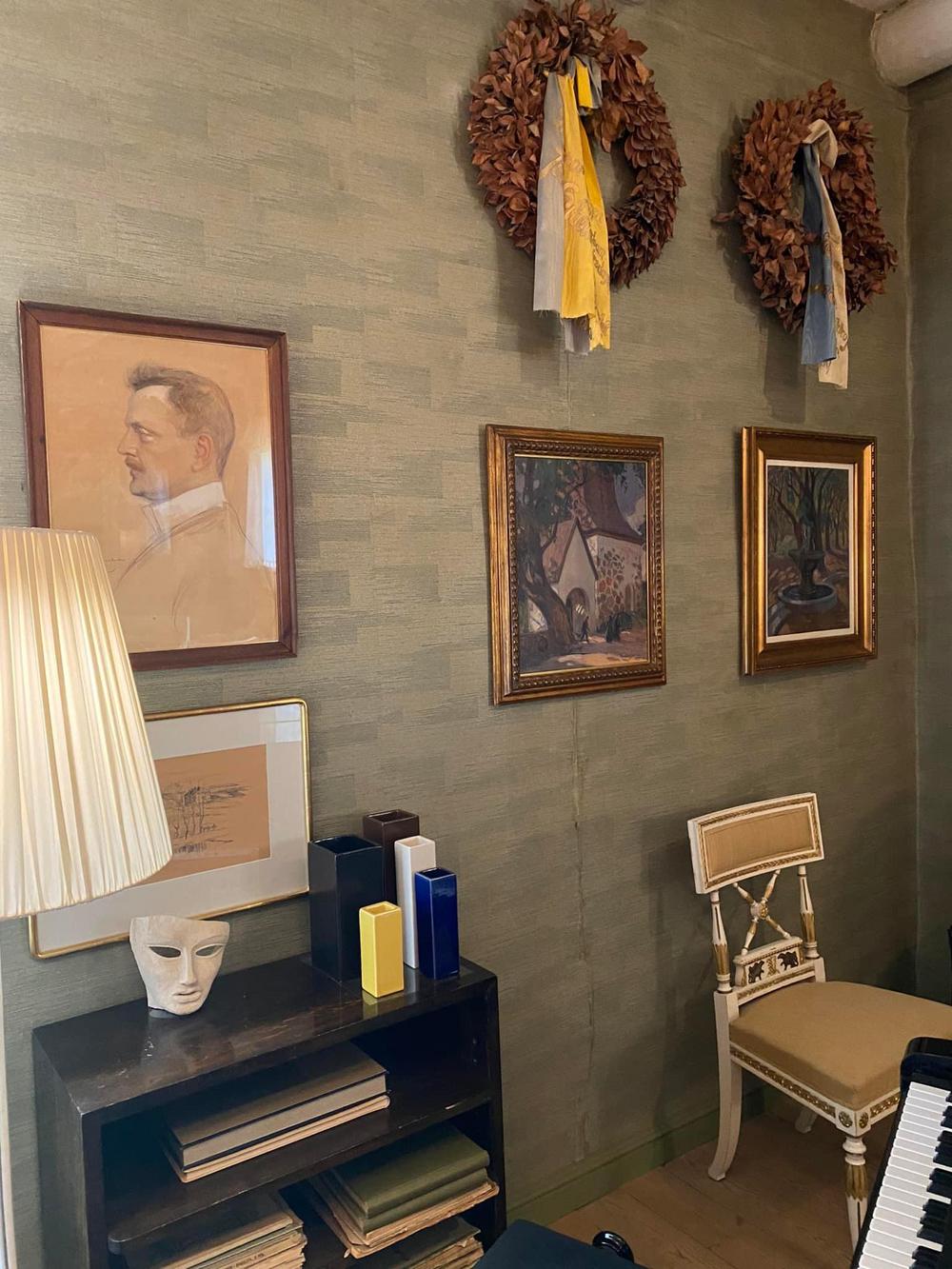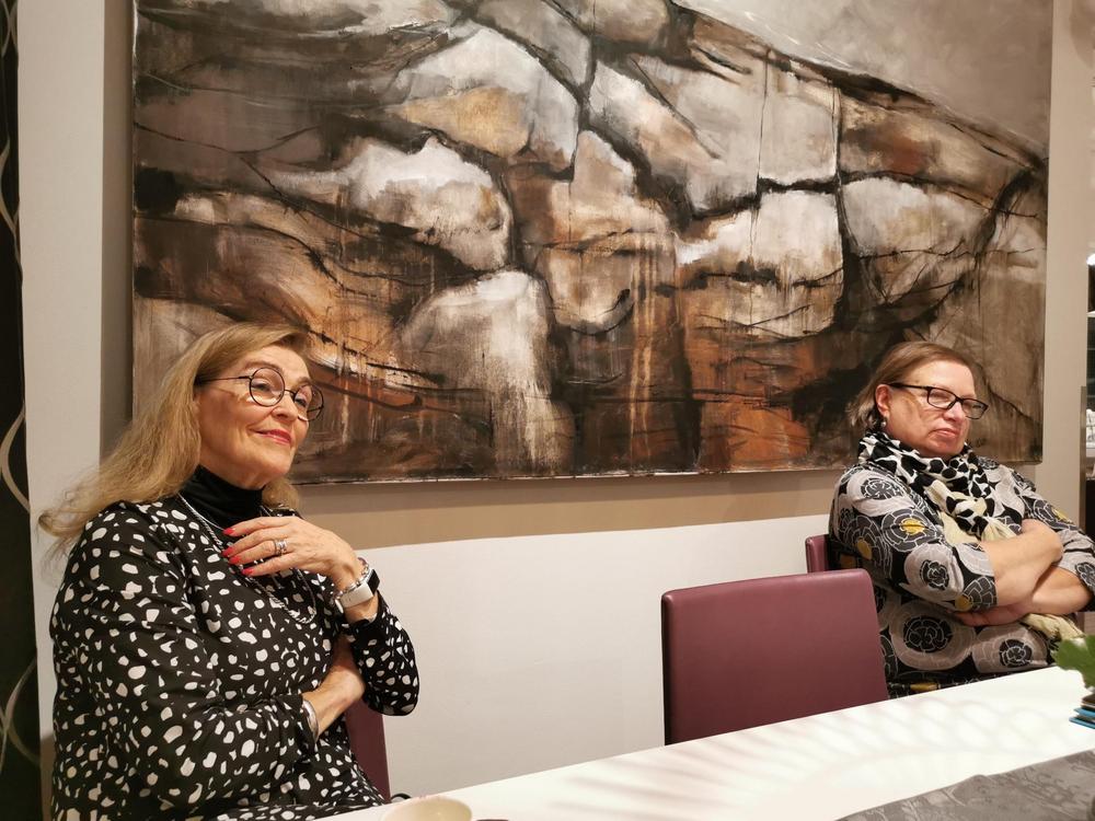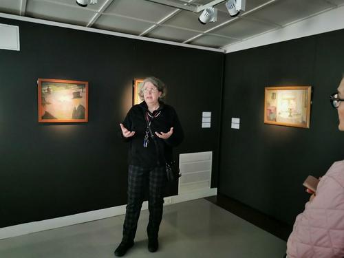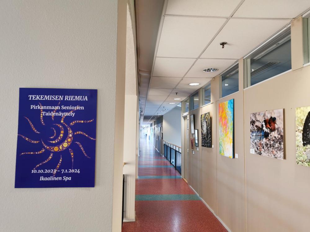 Valokuvissa näkyy seinillä kuvataiteilija Riitta Ali-Rekolan upeita töitä. Näyttelyn avajaiset oli maanantaina. Kannattaa käydä ihastelemassa hienoa taidetta!!!