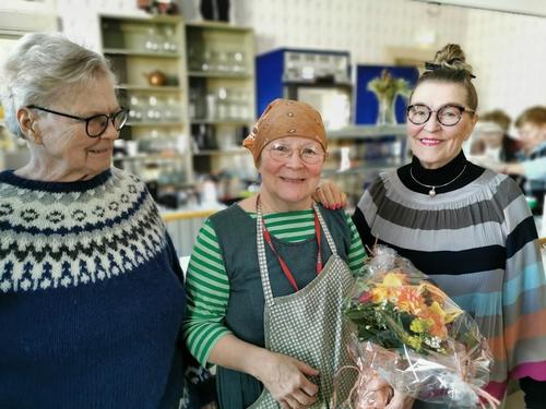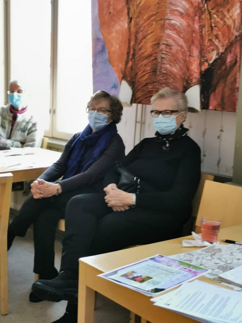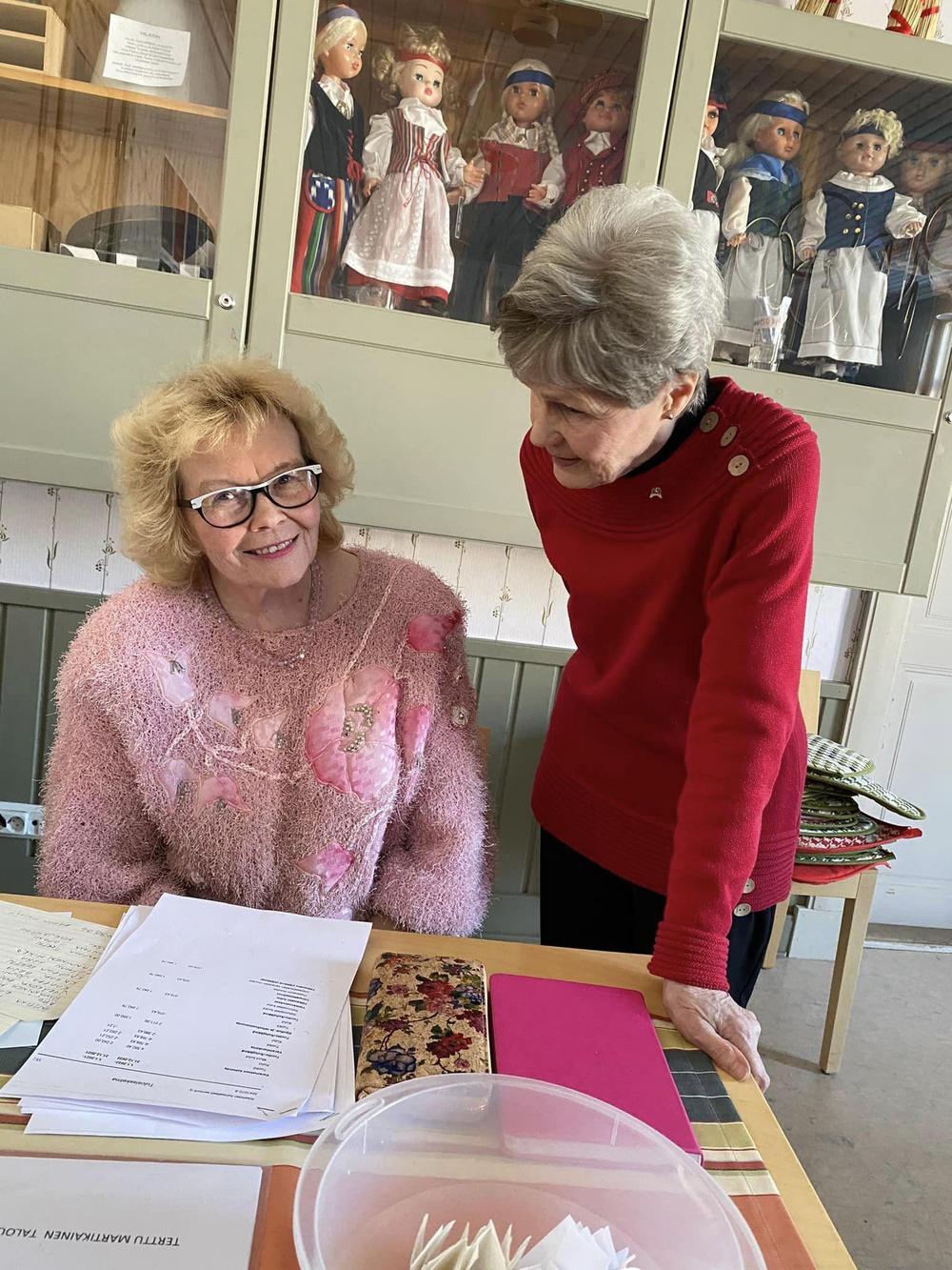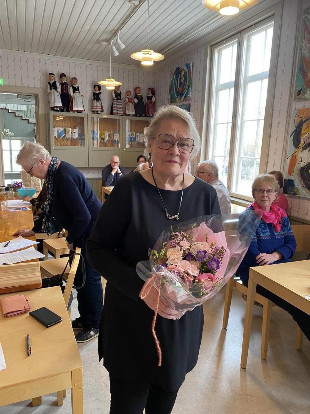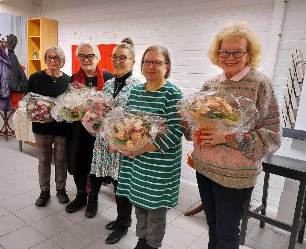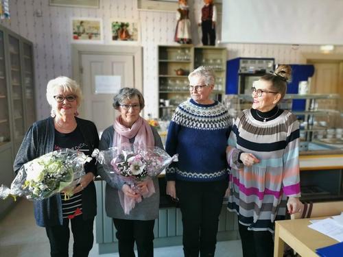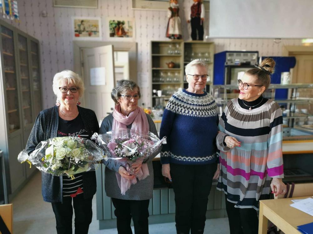 Kokouksen lopuksi kukitimme tilintarkastajat Vuokon ja Maritan, jotka talkootyönä tekevät tämän tärkeän osuuden toiminnassamme! Upeat kimput Kukkavarpukasta!