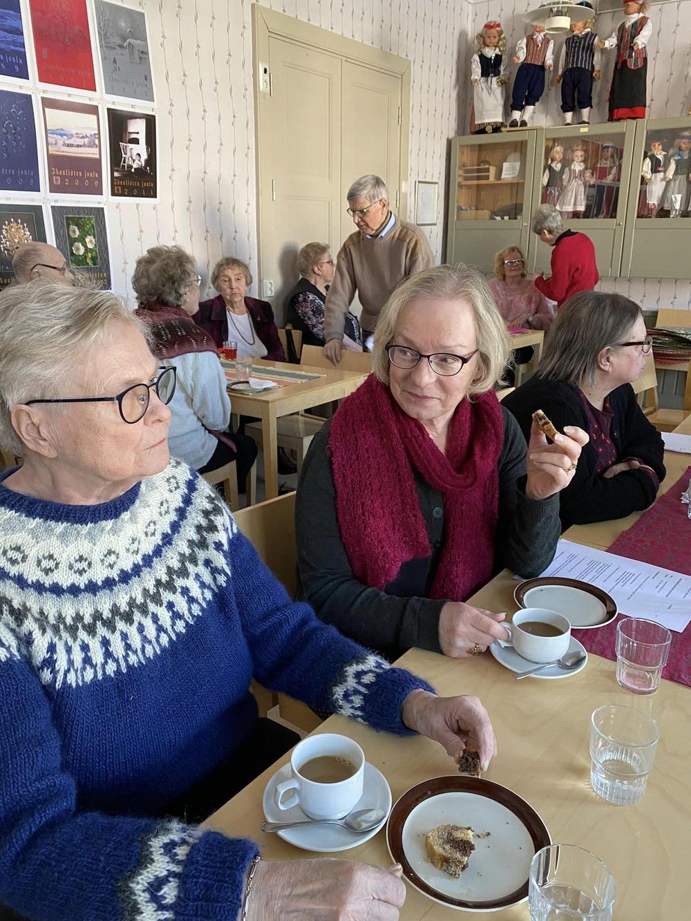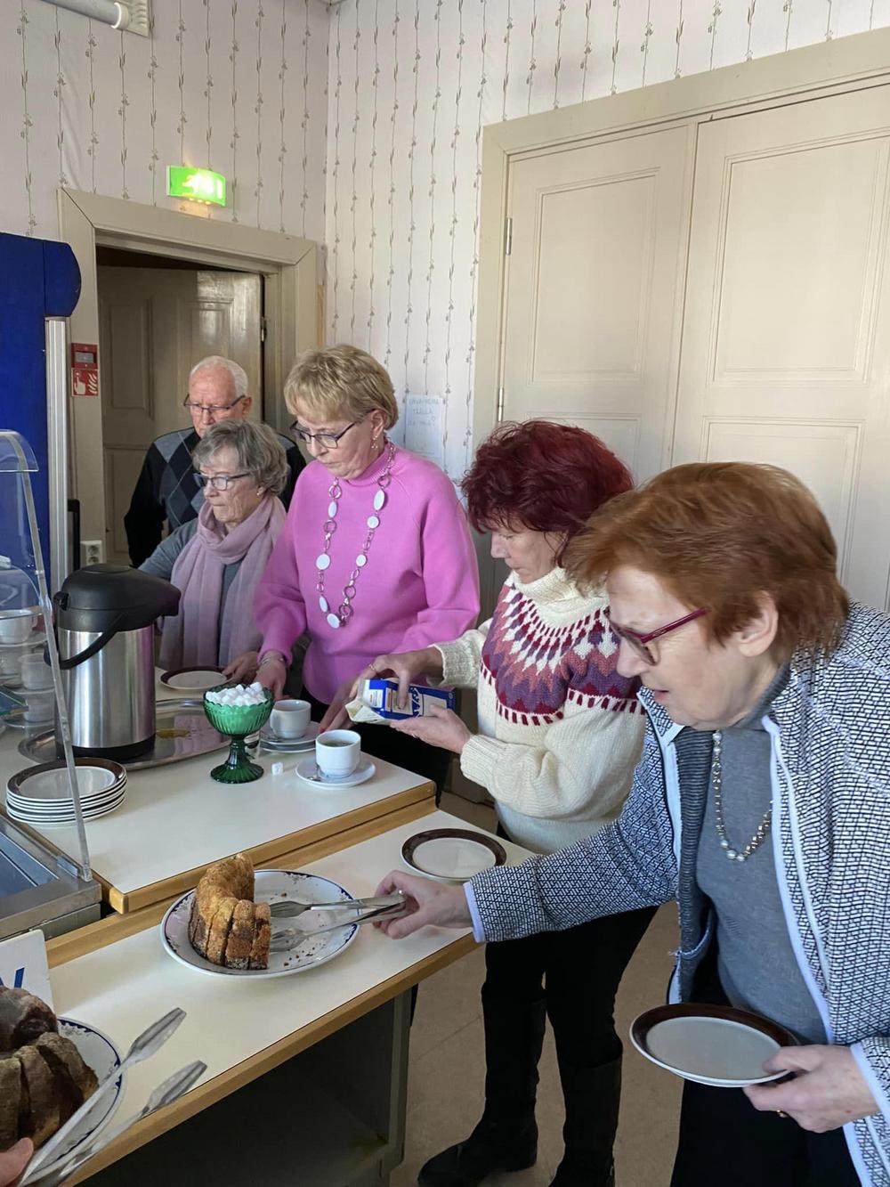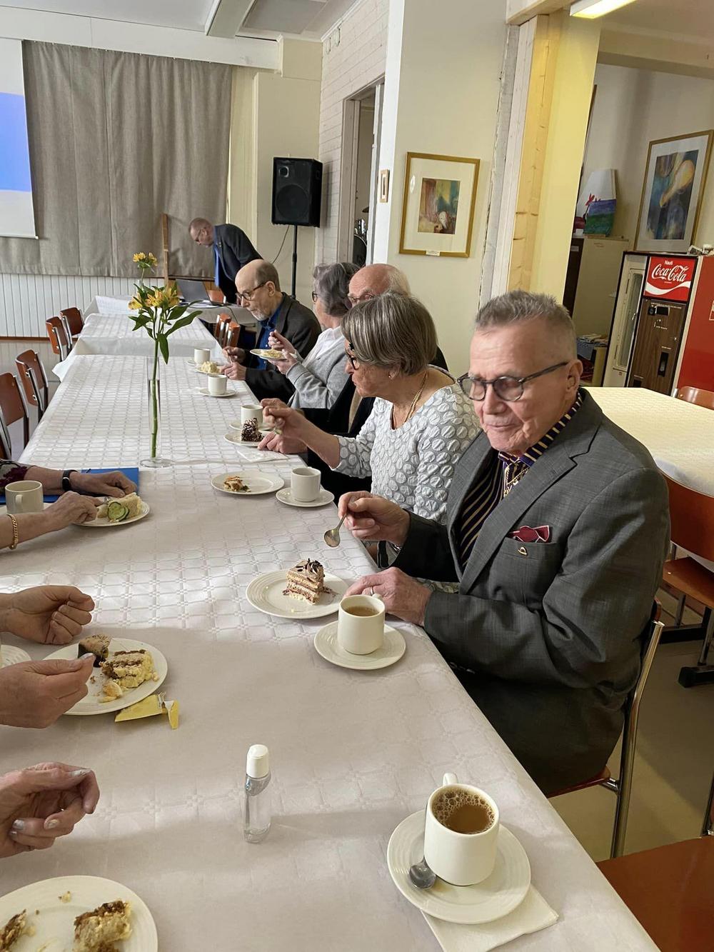 Hyvät kahvit voileipäkakkujen ja leivosten kanssa nautittiin aluksi.