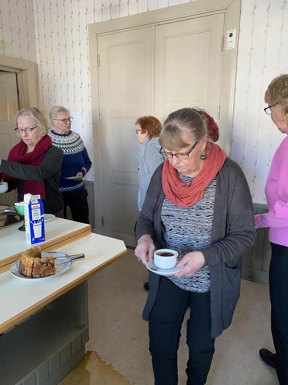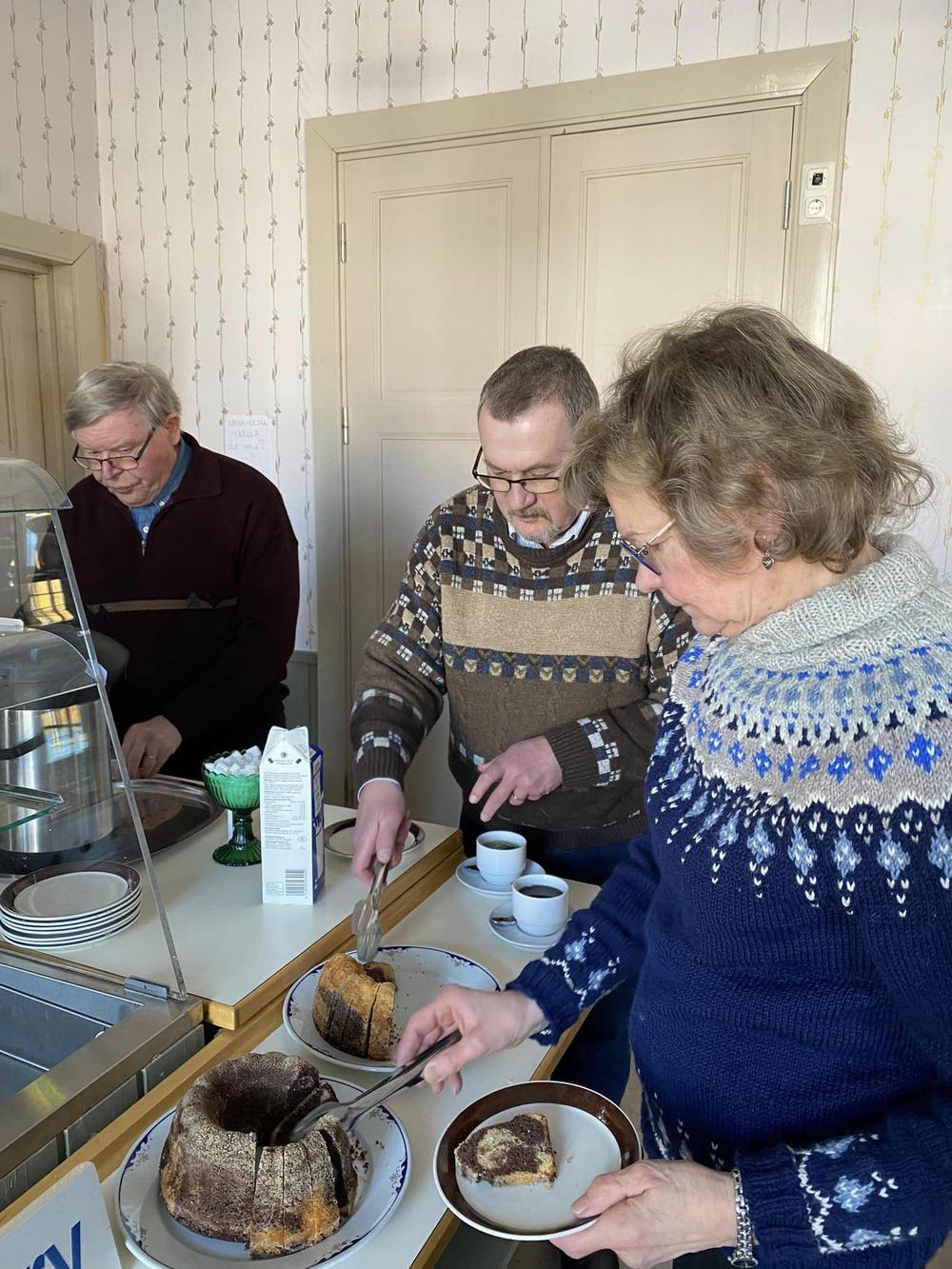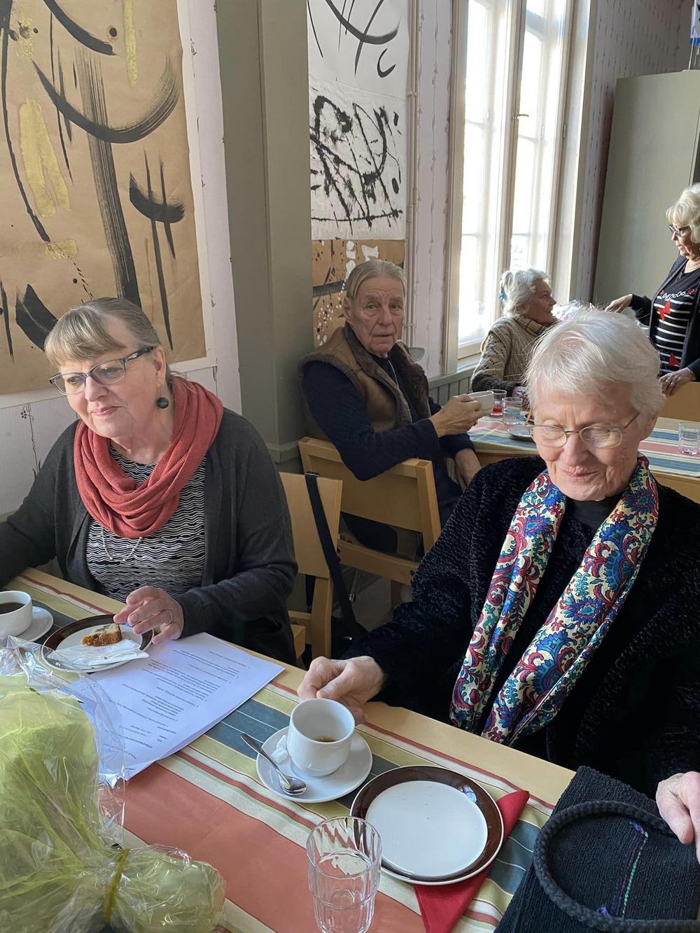 Hyvät kahvit voileipäkakkujen ja leivosten kanssa nautittiin aluksi.