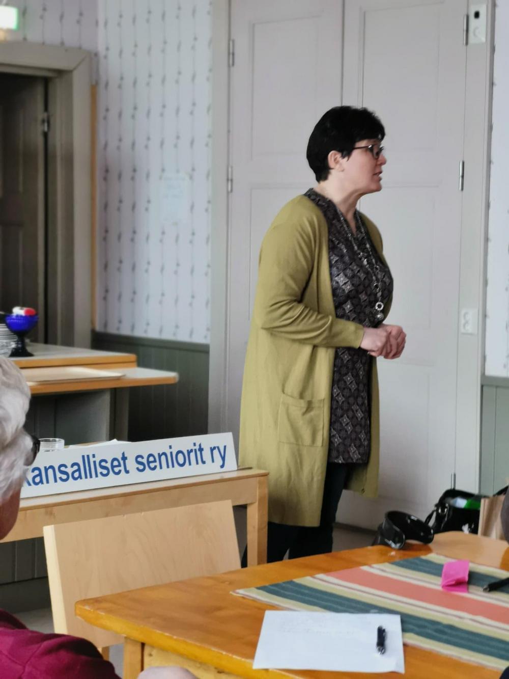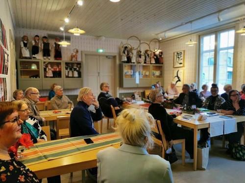 Ohjelmana kokoontumisessa oli kulttuurihenkilö Leena Sällin esitelmä ”Murteet esitysten elävöittäjänä”. Kuulijoita oli 34 senioria yhdistyksestä.