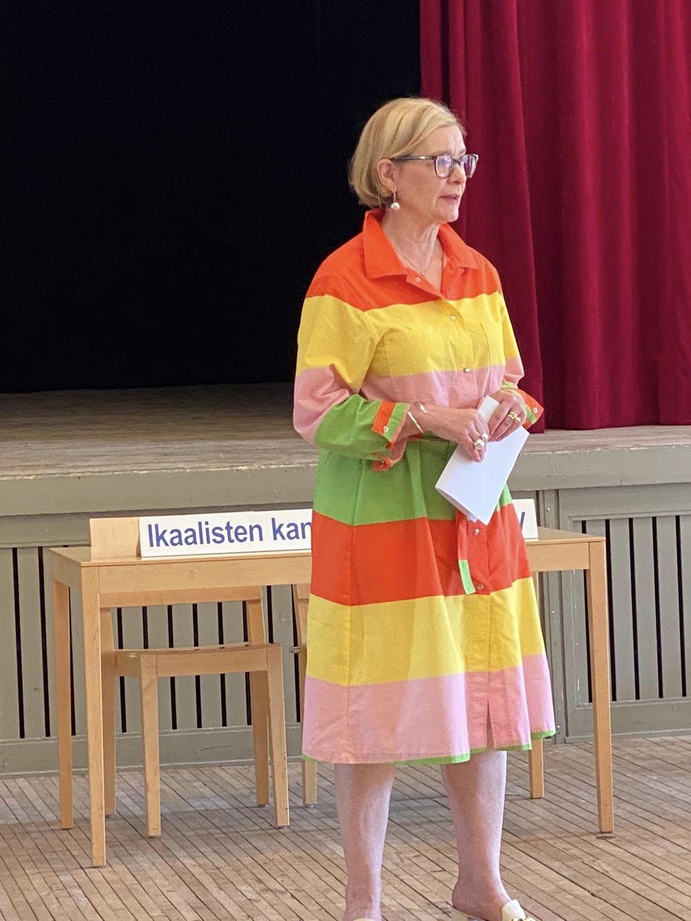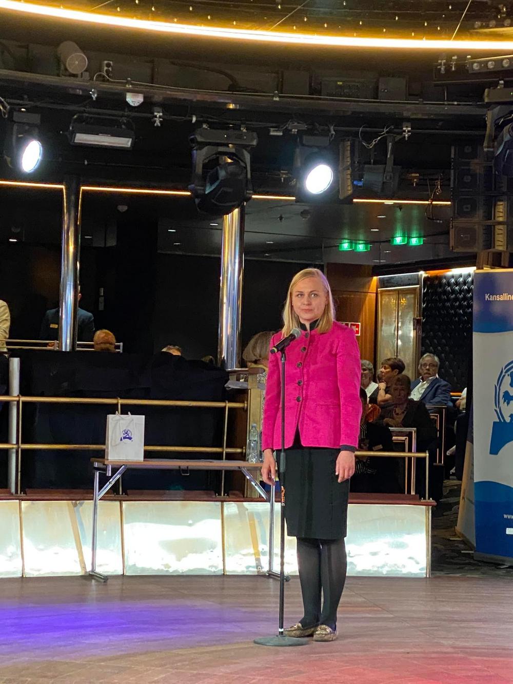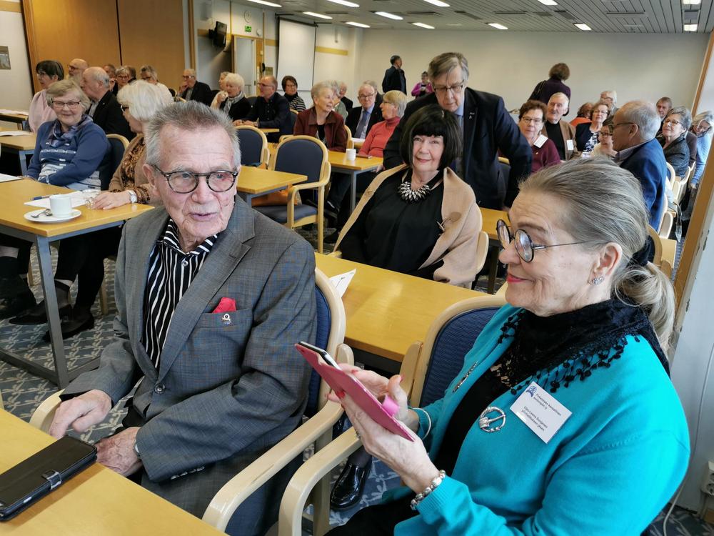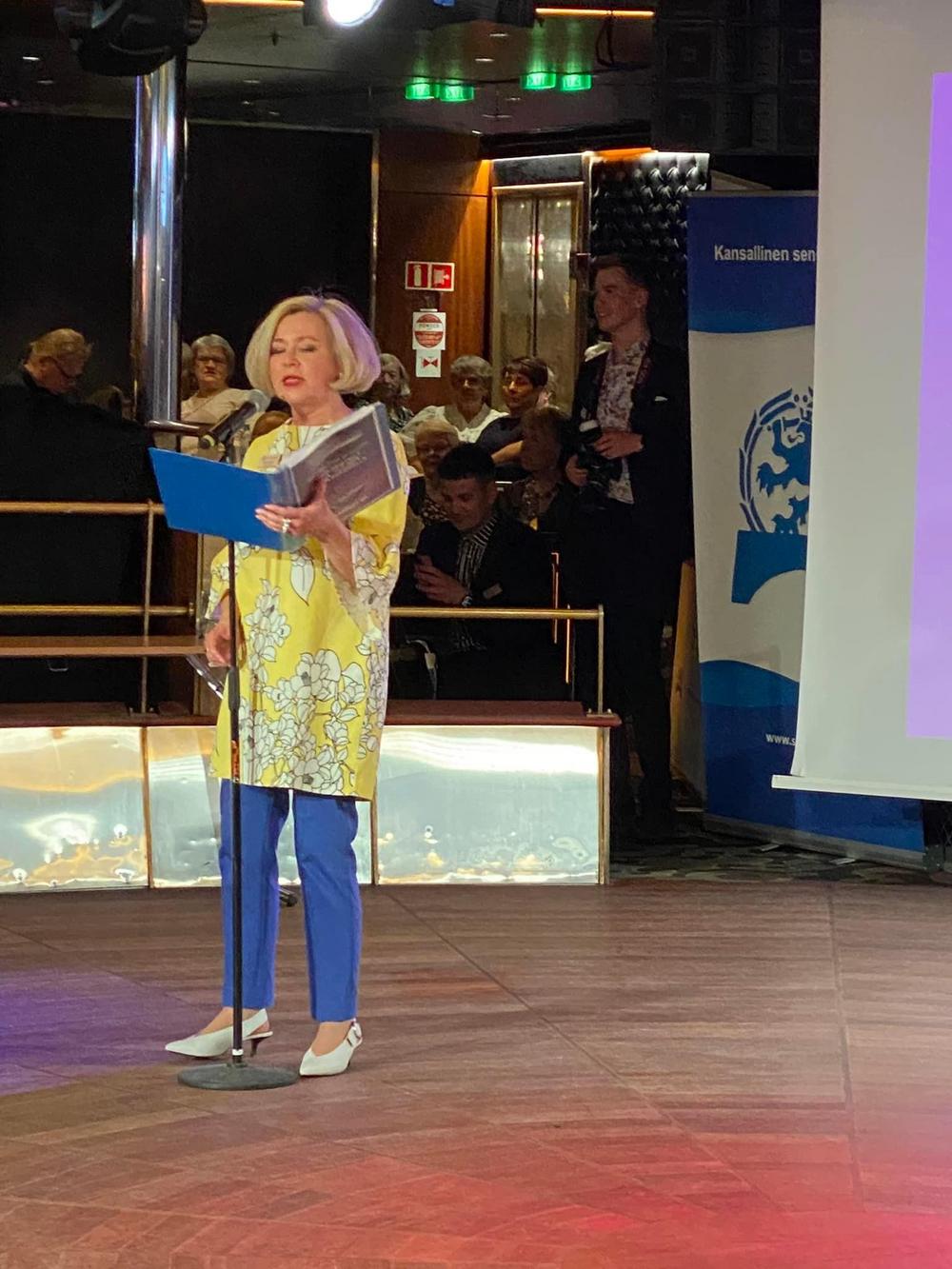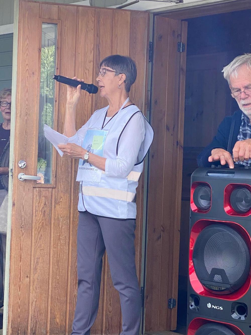 Ulpu-Leena toi tuoreet terveiset Senioriliiton kolmen piirin juhlasta Raumalta.