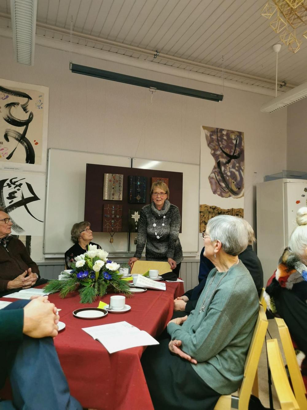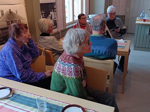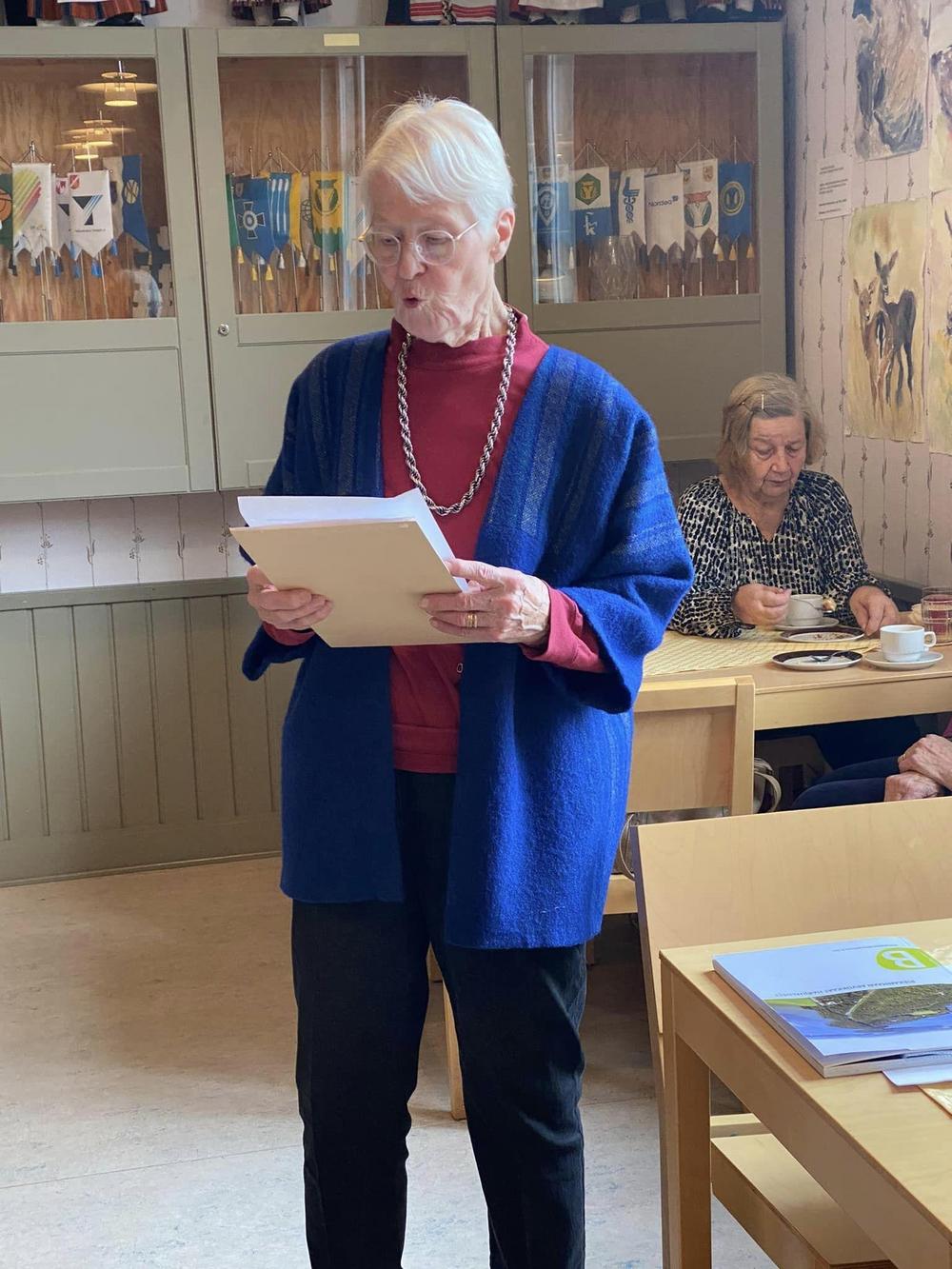 Seniori Tuula Eränen luki meille kaksi erilaista kirjoittamaansa tarinaa. Hienot muistelot vaelluksilta Vatulan maastossa eri suuntiin. Ikaalisten monipuolinen yhteisöllisyys vuosikymmenien takaa asti piirtyi kuulijoiden silmiin eläväksi kokemukseksi. KYRÖSJÄRVEN merkitys meille, mielenkiintoista tarinaa. Tuulalle suurkiitos!!