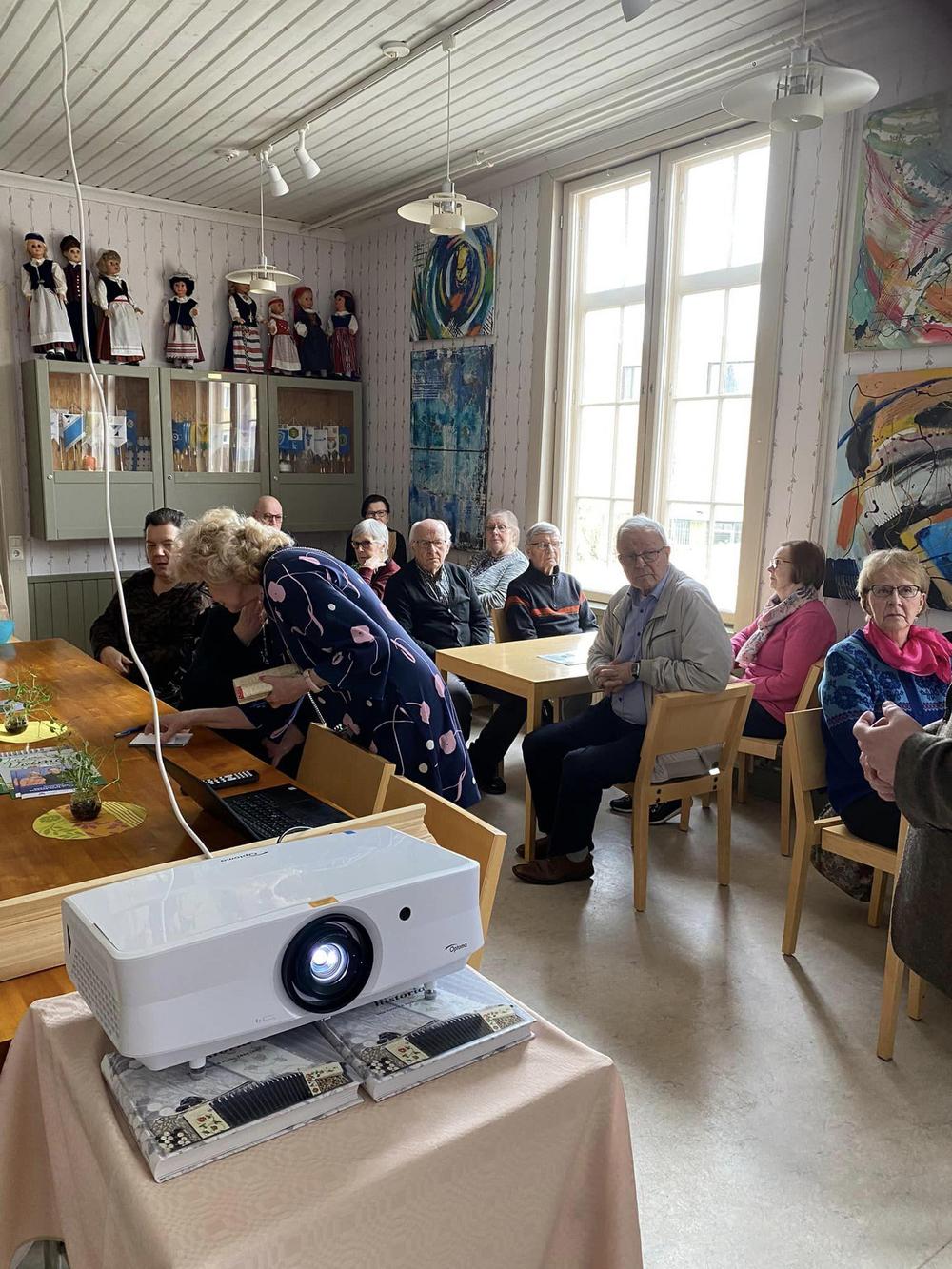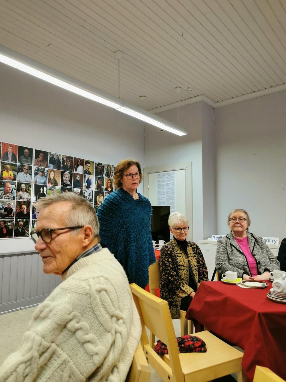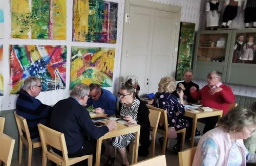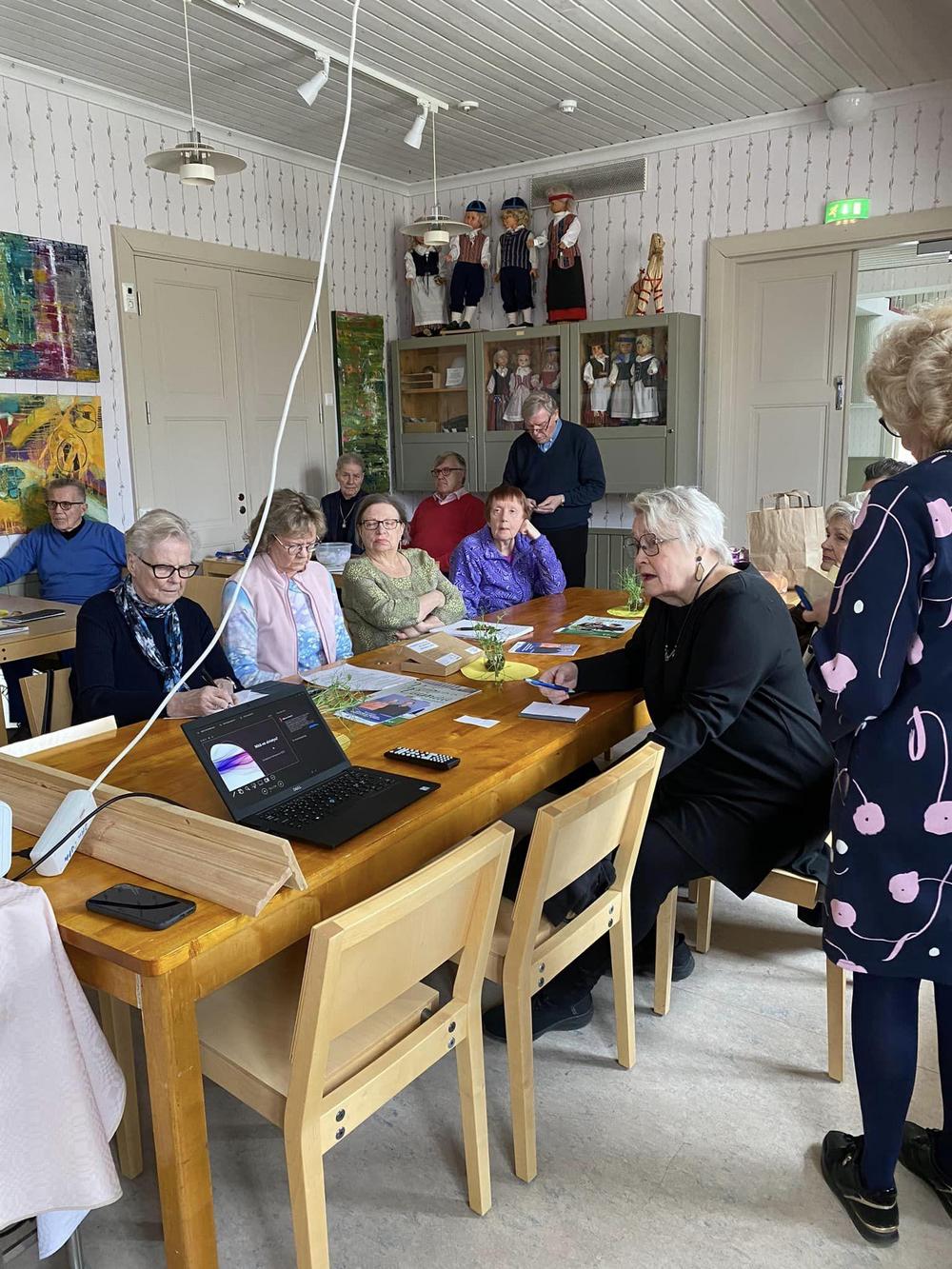 Seniori Tuula Eränen luki meille kaksi erilaista kirjoittamaansa tarinaa. Hienot muistelot vaelluksilta Vatulan maastossa eri suuntiin. Ikaalisten monipuolinen yhteisöllisyys vuosikymmenien takaa asti piirtyi kuulijoiden silmiin eläväksi kokemukseksi. KYRÖSJÄRVEN merkitys meille, mielenkiintoista tarinaa. Tuulalle suurkiitos!!