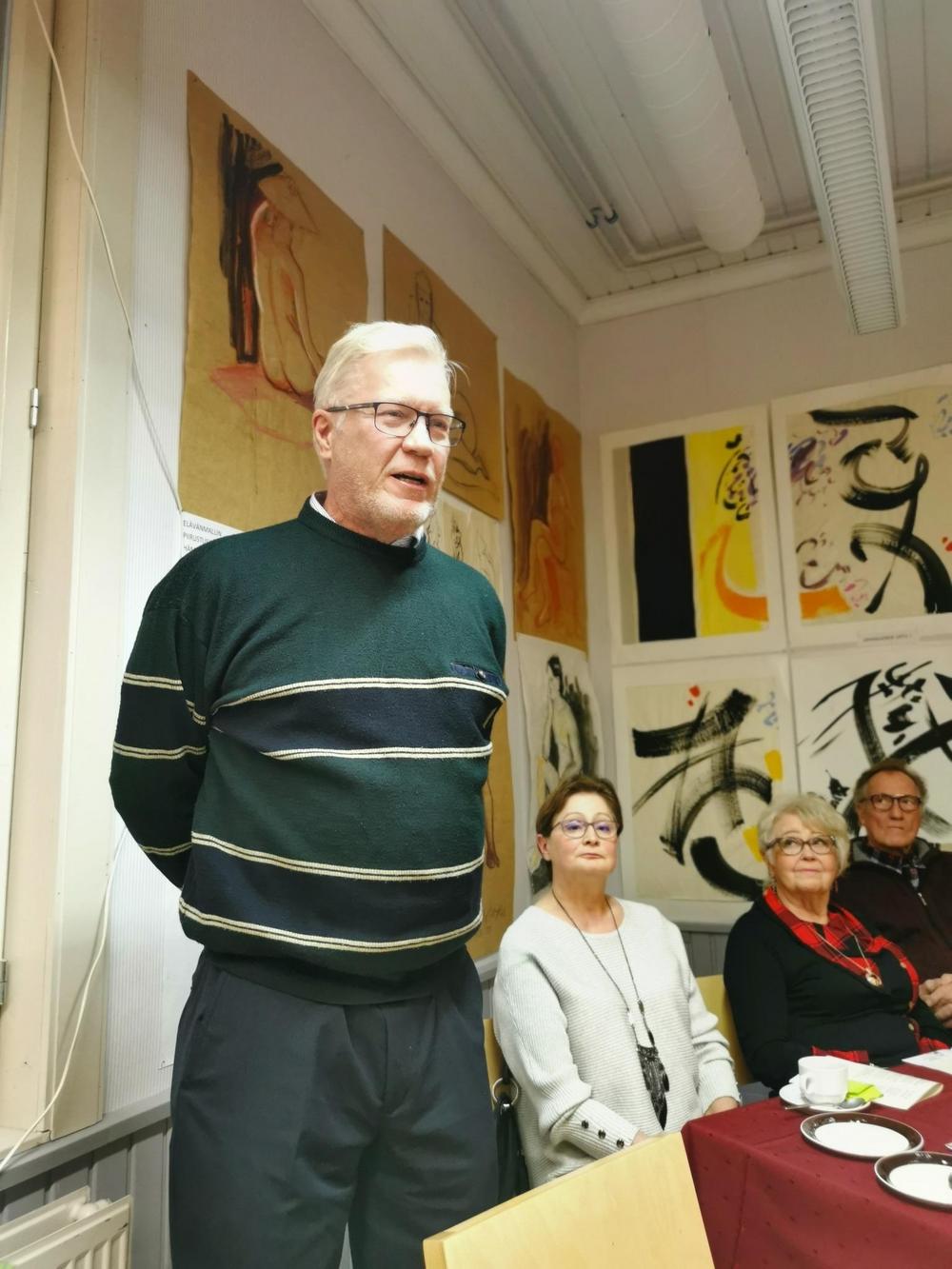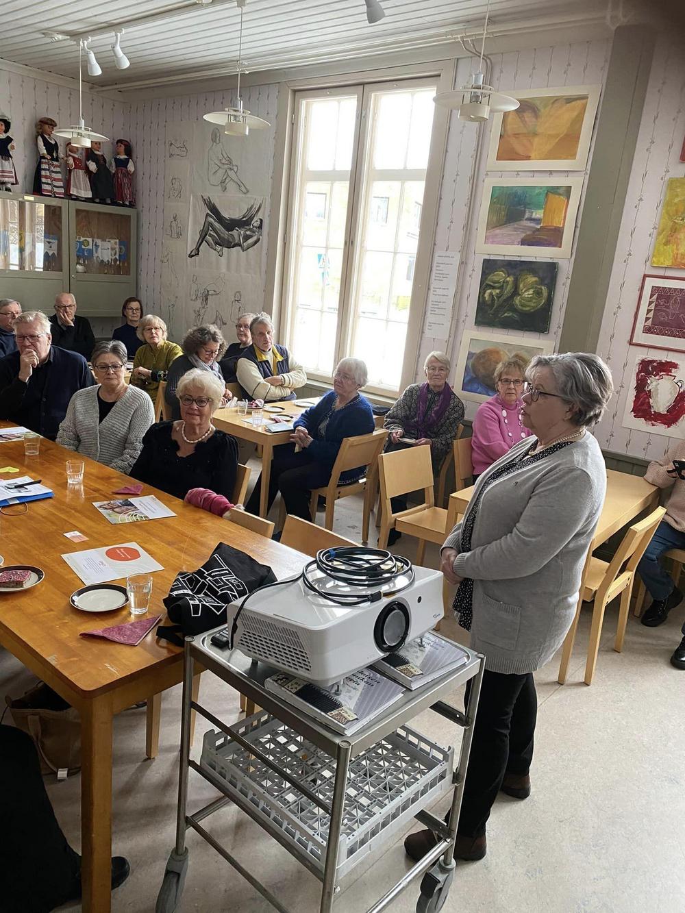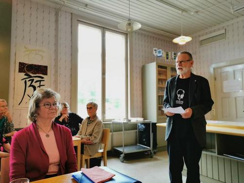 Ennen varsinaista kokousta Ylöjärven kulttuuripäällikkö Minna Vallin kertoi Ylöjärven kulttuurielämästä. Seuraavaksi sukututkija ja Ylöjärven historian tuntija Torbjörn Nikus kertoi meille kokouspaikan, kulttuuritalo Saurion historiaa.