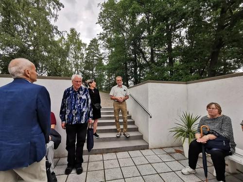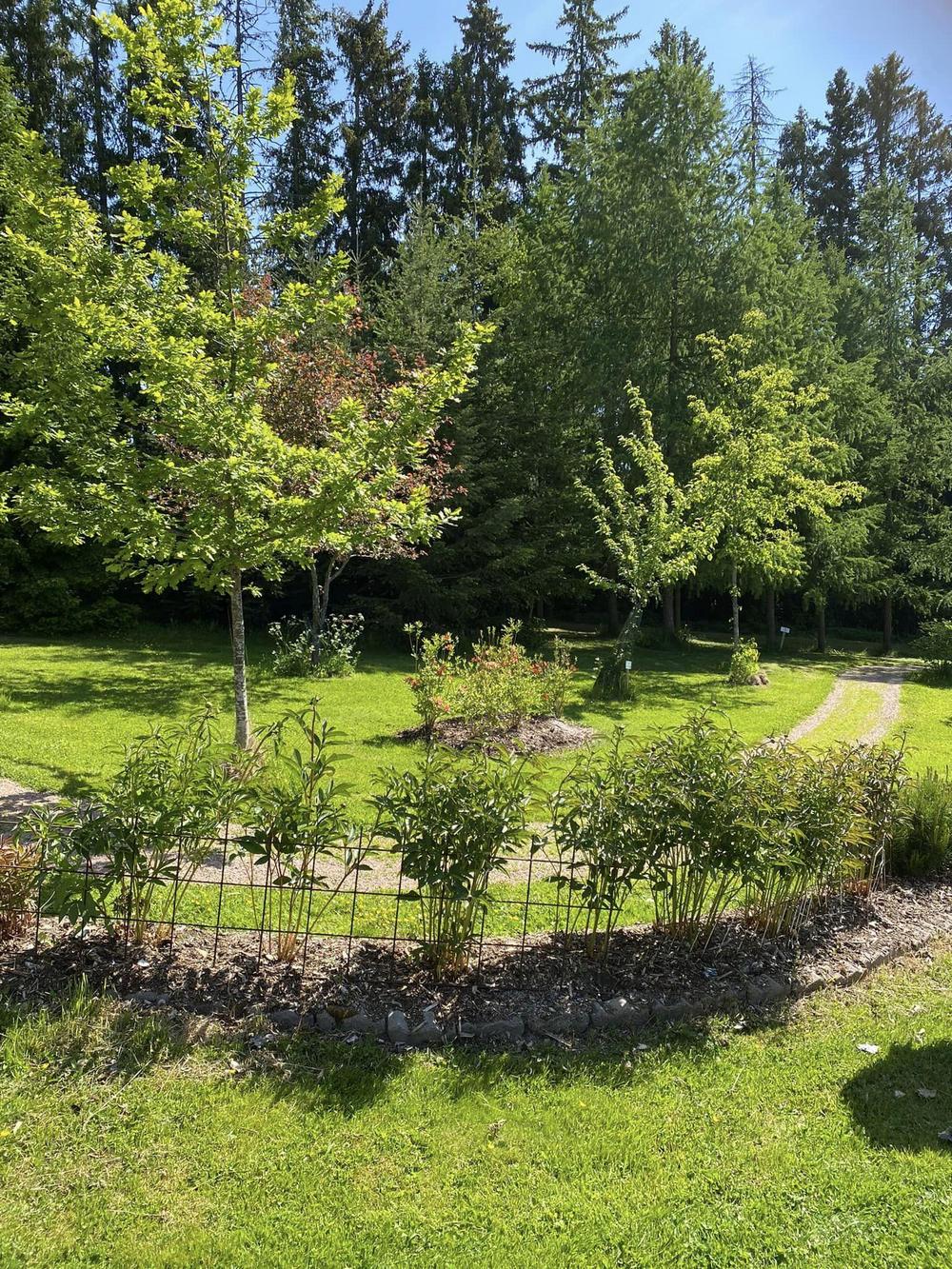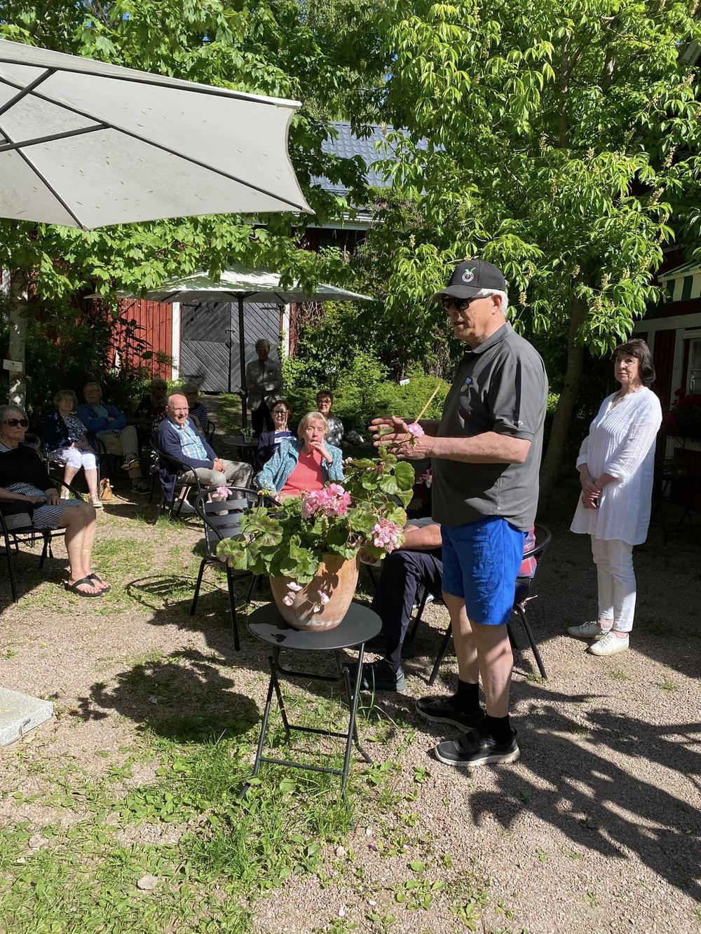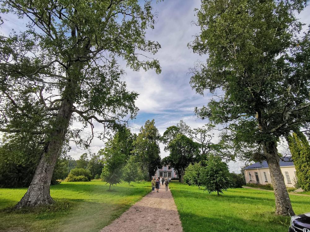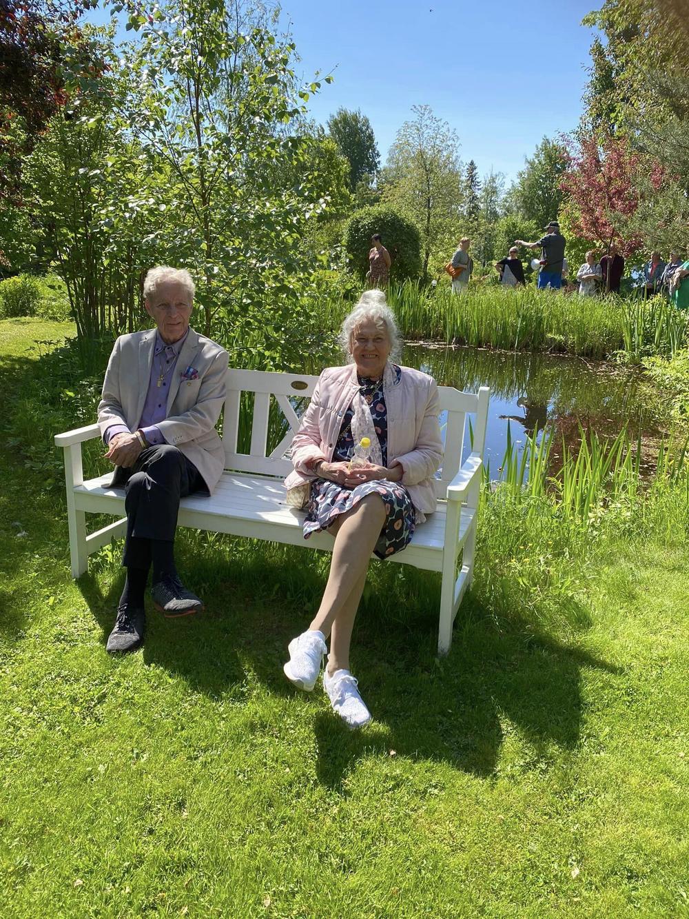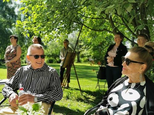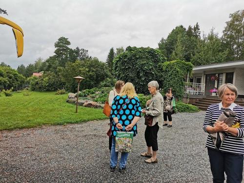 Isäntäpari Erkki ja Leila Frick ottivat meidät ystävällisesti vastaan tiluksilleen. Aurinkoisessa säässä kuuntelimme Erkin tarinaa arboretumin synnystä ja eri vaiheista tähän päivään.