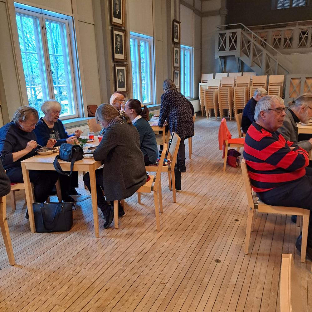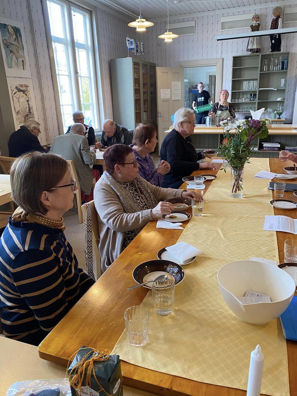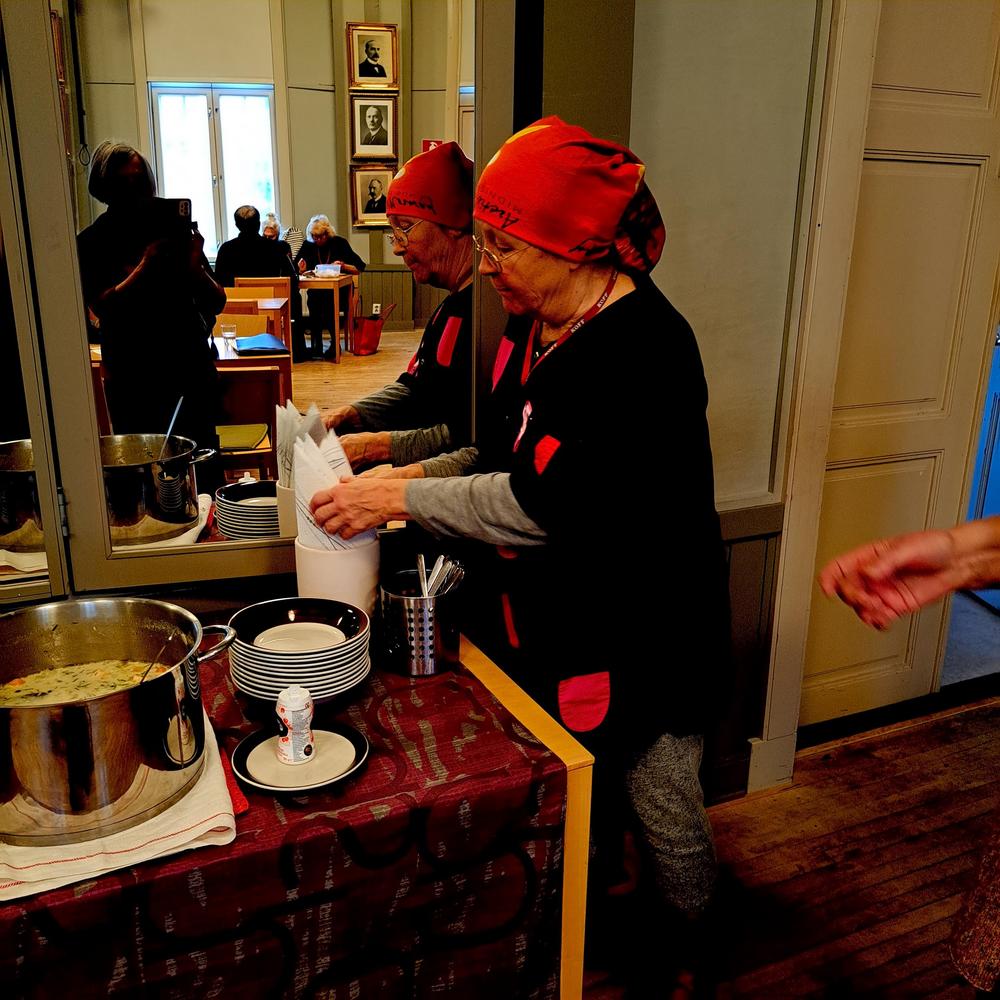 Ikaalisten kansalliset seniorit, 29 reipasta senioria, nauttivat kuukausikokoontumisessa herkullista kanakeittoa, kasviskeittoa ja rieskoja. Maistuvat kahvit ja teet juotiin herkulliset viinerit kyytipoikana!! Oman Tuvan väki taas pisti parastaan! Kiitos!
