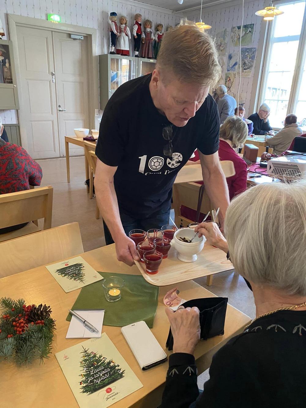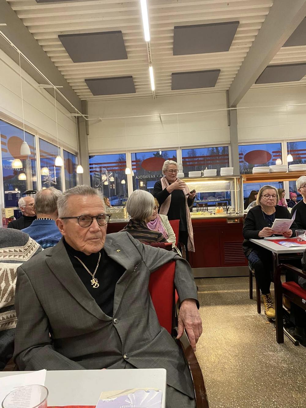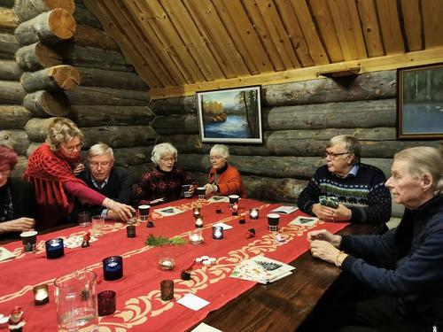 Parkanon seniorit kutsuivat Ikaalisten kansalliset seniorit viettämään pikkujoulua kanssaan Kivelään 16.12.2022. Saimme nauttia Vanhan ajan joulumenun, joka sisälsi suolaista ja makeaa, voitte vain arvata, että ruuat olivat todella herkullisia ja suorastaan sulivat suussa. Kaikenlisäksi sen olivat seniorirouvat valmistaneet itse meille. Lämmin kiitos teille. Nautimme jouluisesta yhdessäolosta laulaen ja muun ohjelman merkeissä. Lopuksi oli vielä jännittävä arvonta ja monella oli voitto kainalossa kotiin palatessa. Matkan teimme tutussa ja turvallisessa kyydissä, tietenkin Timo Tuomiston, kiitos.Lämpöiset kiitokset Parkanon kansallisille senioreille ja joulupukille, joka ehti vierailla pikkujoulussa.