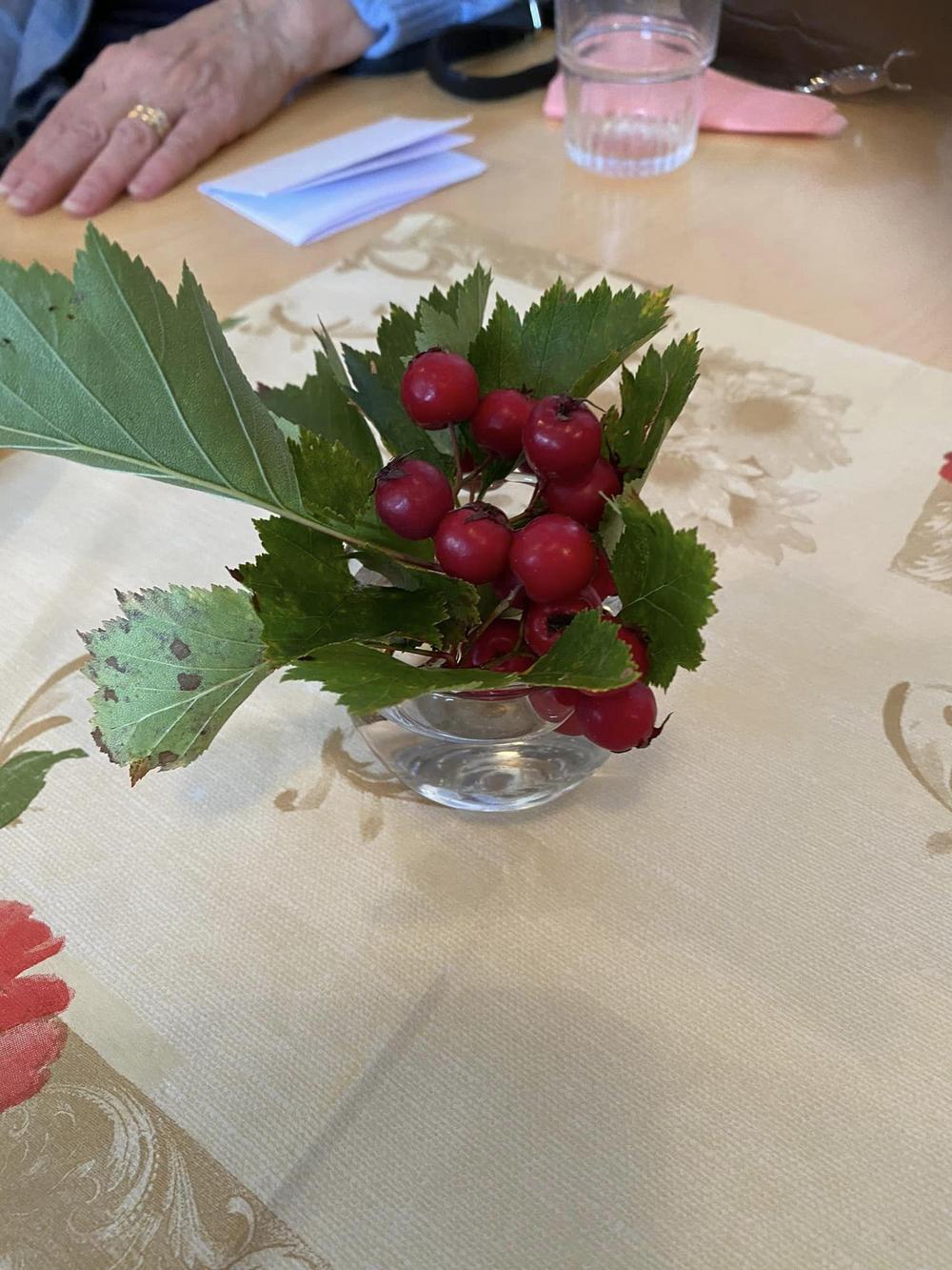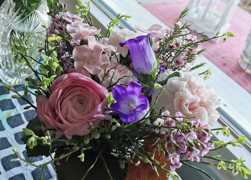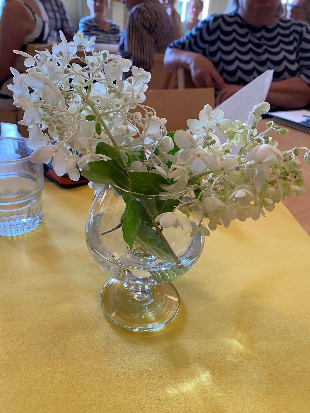 Kokouksen aluksi, ennen ruokailua kukitimme talon emännän Marran. Kiitollisina vuosien uutterasta passaamisesta ja saamastamme herkkutarjoilusta!