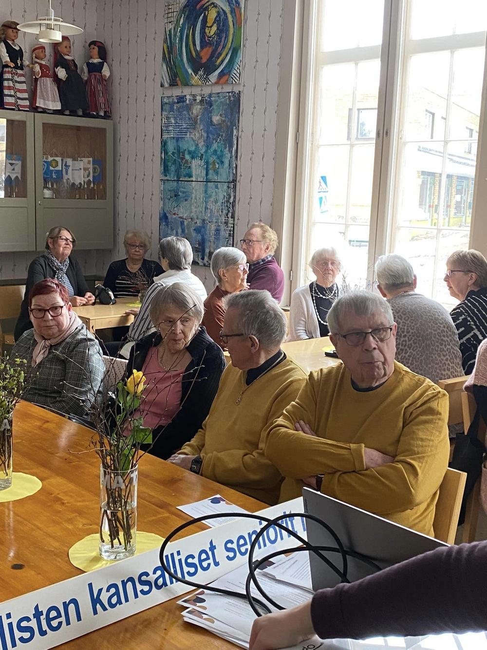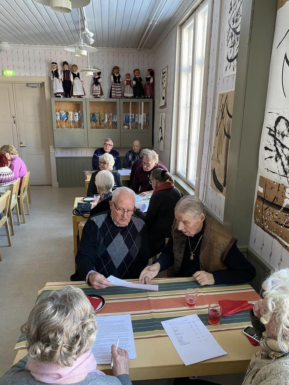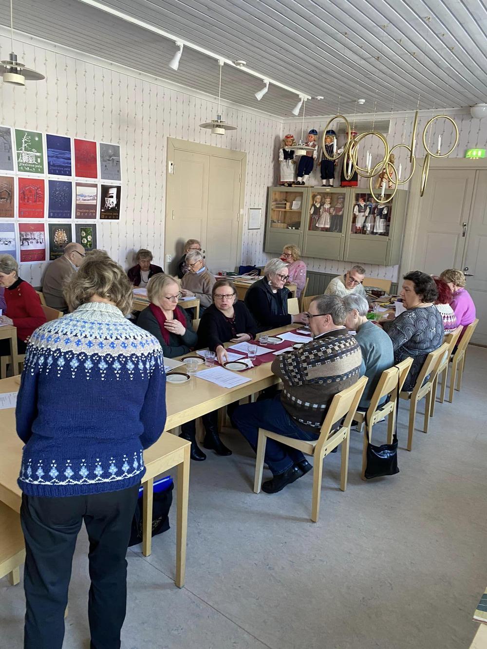 Ikaalisten kansallisten seniorien tehokas, iloinen kuukausitapaaminen ja kevätkokous oli 9.3.2023 Omalla Tuvalla.