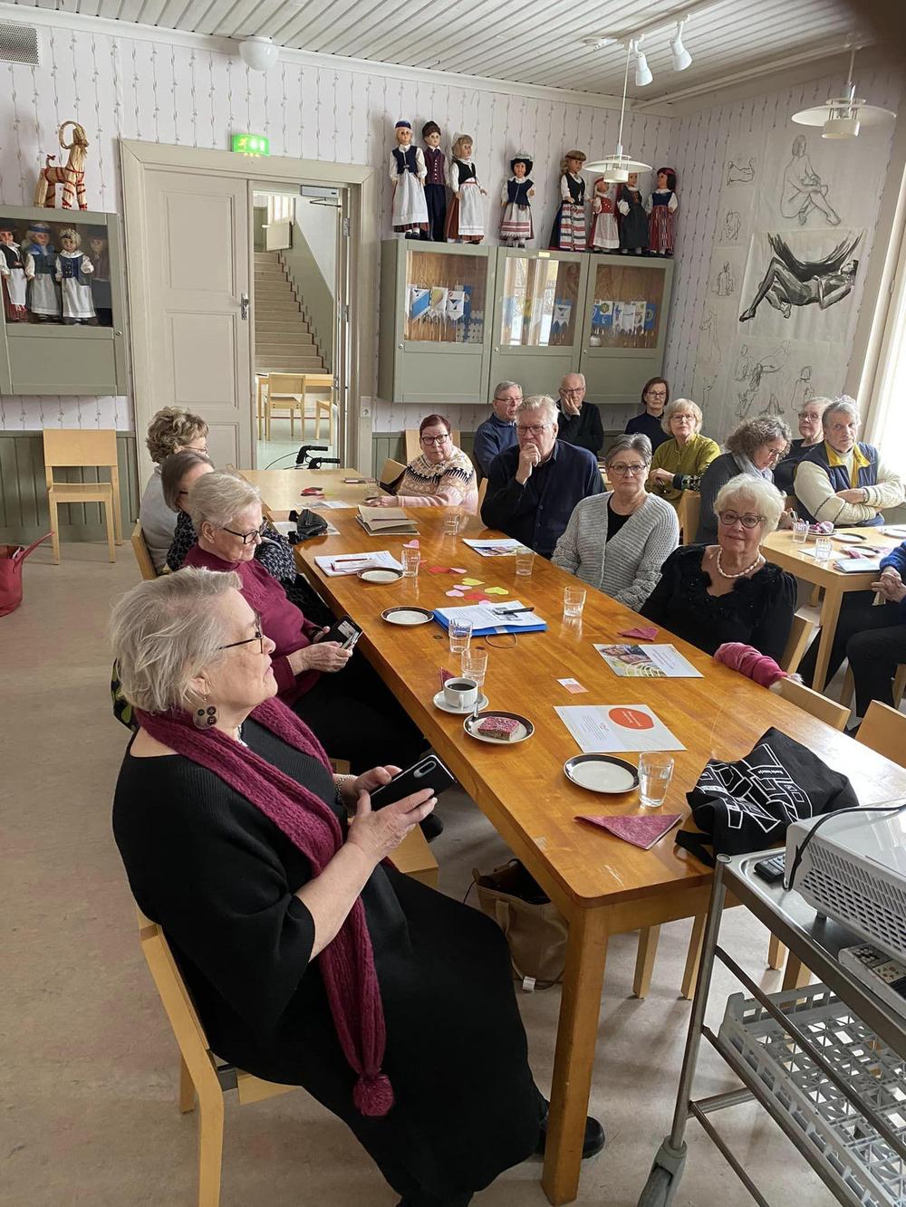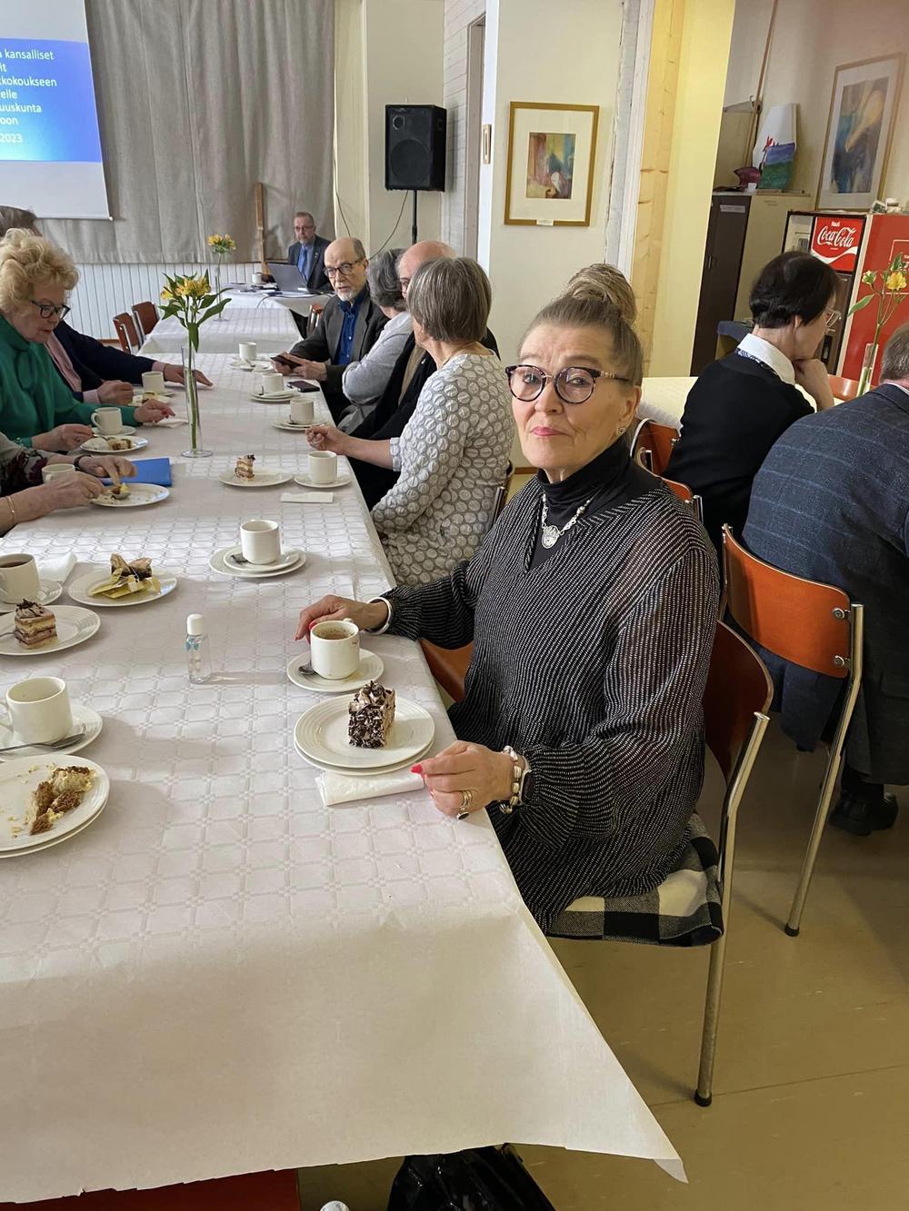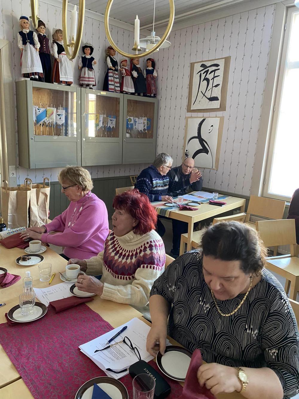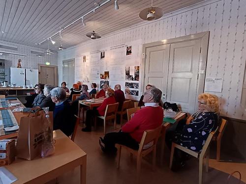 Ikaalisten kansallisten seniorien tehokas, iloinen kuukausitapaaminen ja kevätkokous oli 9.3.2023 Omalla Tuvalla.
