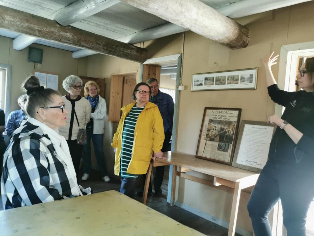 Tämän jälkeen maistuikin buffeepöydän antimet ravintola Wanha Brankkarissa. Kahvit juotuamme jatkoimme METSÄMUSEOON. Piha-alueen kaikki rakennukset kolusimme erinomaisen oppaamme johdolla. Lisäksi iso näyttelyhalli teki tutuksi lukemattomia erilaisia metsätöissä tarvittavia välineitä.