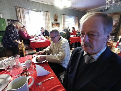 Herkullinen sienikeitto ja porkkanakeitto lämmitti mukavasti pakkaspäivänä, kyydissä mukana taas maukkaat rieskat! Yhdistyksen emäntä Kaija oli leiponut ihanan, perinteisen tiikerikakun kaffeen kyytipojaksi!
