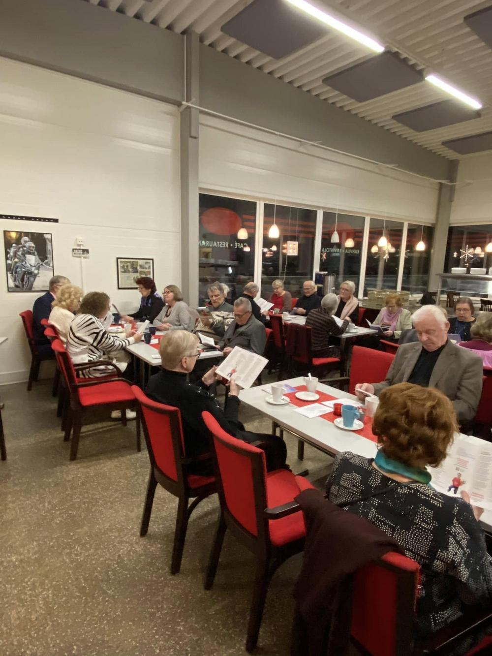 Ikaalisten kansalliset seniorit ry juhli Omalla Tuvalla 10. joulukuuta seniorikaffeitten merkeissä, jossa toivotimme tervetulleeksi uudet jäsenemme. Puheenjohtajamme Ulpu-Leenan johdolla lauloimme runsaasti joululauluja, kuulimme tarinoita, runoa ja läsnäolijoiden esittelyt itsestämme!! Iloitsimme kaikista uusista jäsenistä, joihin saimme näin kasvotusten tutustua!! Tunnelma oli iloinen ja rentoutunut, yhdessäoloa parhaimmillaan sekä virittäydyimme jouluisiin tunnelmiin. Oli ilo tavata ja tutustua teihin uusiin ja myös vanhoihin jäseniimme uudelleen. Emäntien kahvit piirakoiden ja täytekakun kera maistui kaikille niin hyvin!!Kiitos emännille ja kaikille mukana olleille. Tästä on hyvä jatkaa ensi vuonna. Pikkujoulut kuitenkin vielä ensi viikolla parkanolaisten vieraina!