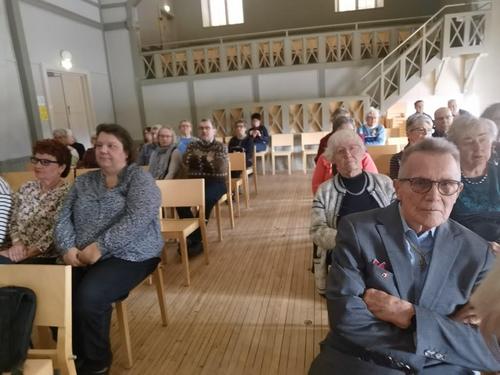 Pirkanmaan kansallisen senioripiirin kevätkokous to10.4.2025. Hämeenkyrön seniorit ry:n puheenjohtaja Eija Anttila avasi kokouksen. Piirin puheenjohtaja Tuija Seppänen kertoo piirin terveiset. Kulttuurikoordinaattori Arttu Pentikäisen kertomaa hämeenkyröläisyydestä. Marja Lepolan monologi, Eemelin tiestä Nobel kirjailijaksi, Äite Miinan kertomana. Senioriliiton terveiset toi hallituksen jäsen Rainer Hirvonen. Kokouksessa oli osanottajia ympäri Pirkanmaata ja myös meitä Ikaalisista oli runsaasti osanottajissa. Tässä muutama kuva tilaisuudesta!