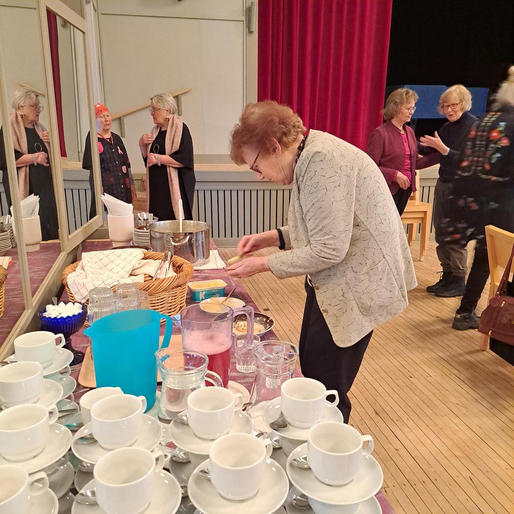 Kahvit ja laskiaispullat nautimme Kirsin esityksen jälkeen.